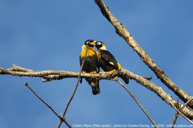 - 06:00 - 08:00 - When the sunlight brightens the sky, birds begin to show up on the branches of trees. We will use spotting scope to watch them. We will look for such birds as Sulphur-crested Cockatoo, Eclectus Parrot, Palm Cockatoo, Blyth's Hornbill, Coconut Lorikeet, Black Lory, Yellow-faced Myna, Golden Myna, Helmetted Friarbird, Black-browed Triller, Rufous-bellied Kookaburra, Pacific Baza, Sahul Sunbird, Black Sunbird, White-bellied Cuckooshrike, Pinon Imperial pigeon. We will walk along the roadside to watch them. In general, we spend around 2 hours doing the birdwatching walk.